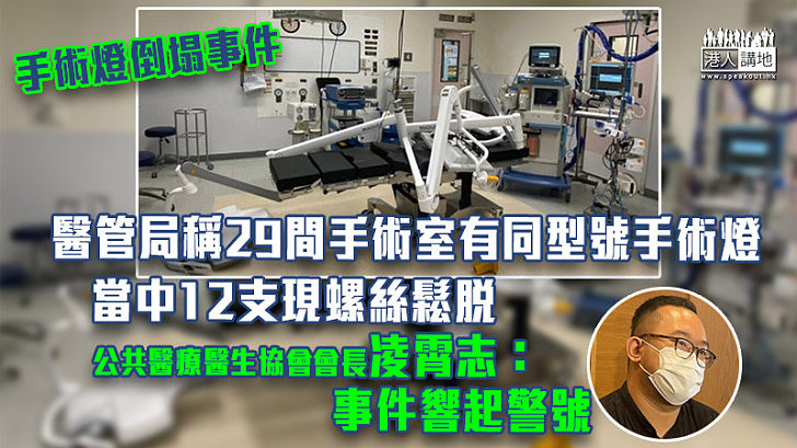 Web 22 hours ago2023-02-20 聯合醫院手術燈掉下事件醫管局發現至少29間手術室使用同型號手術燈當中有12支螺絲鬆目前已即時停用有待更換螺絲並暫停使用有關12間手術室以待詳細檢查 醫管局高級行政經理源柏樑在電台節目表示就今次聯合醫院事件初步相信因手術燈螺絲鬆脫導致組件受壓及破損 他又透露涉及的6口螺絲全部斷裂專.